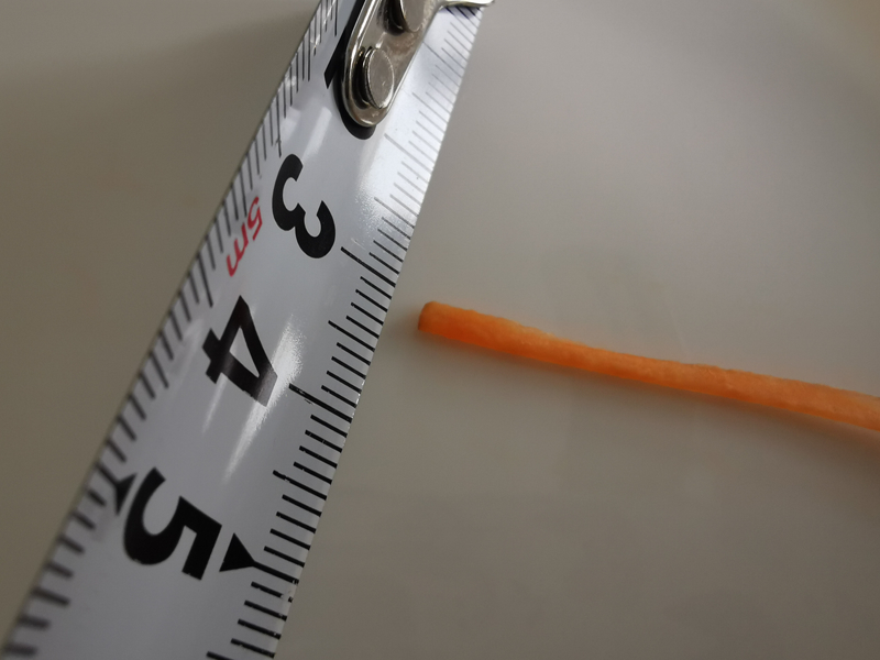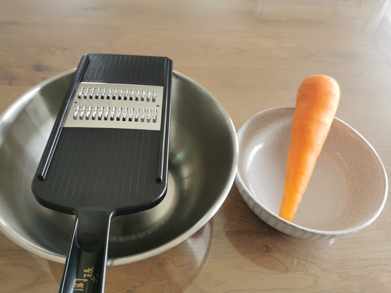 人参(中サイズ)を千切りするのにかかった時間はおよそ1分40秒でした。