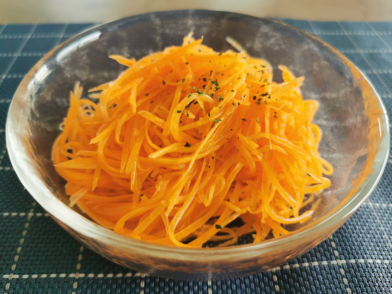 細さが均一なので調味料がよくなじみ、とても美味しいキャロットラペが完成しました!