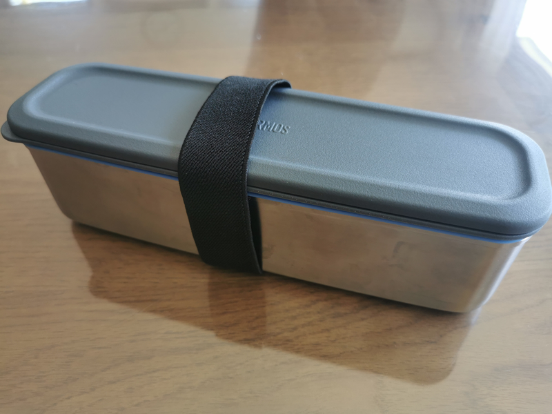 付属のバンドは二段の時を想定しているサイズですが、一段でも蓋が外れない程度には抑えてくれています。