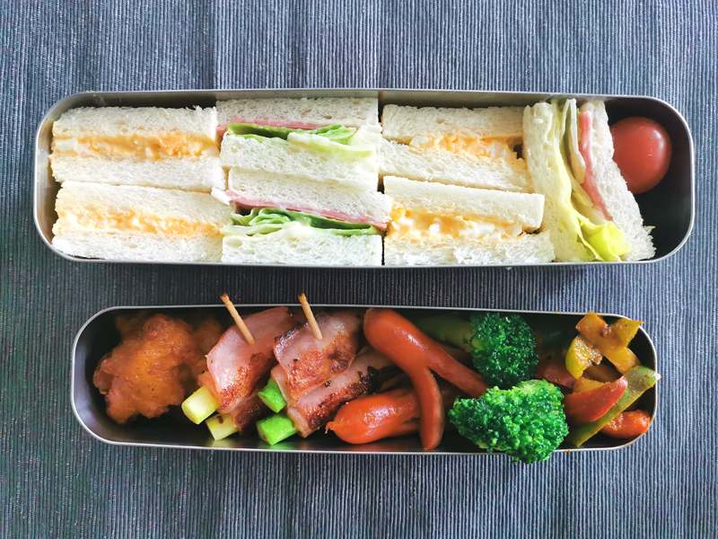 四つ切りにしたサンドイッチも角型と相性よし。
